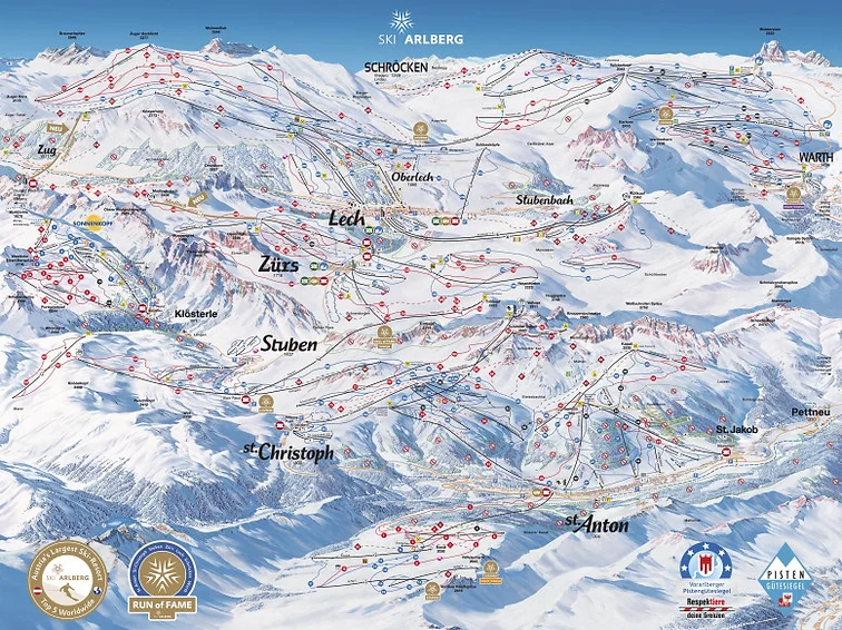 Der Arlberg ist das größte zusammenhängende Skigebiet Österreichs mit 88 Liftanlagen. Es hat etwa 305 km markierte Skiabfahrten und mehr als 200 km Varianten im freien Gelände.